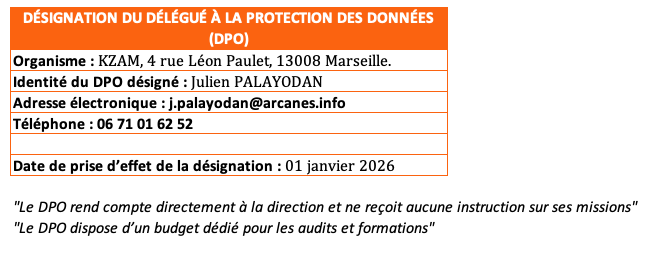 - Je suis informé(e) que mes données sont collectées par la société K-ZAM pour que l’application fonctionne bien.
